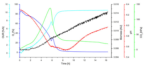 光學傳感器(qì)可以監測和控製重要(yào)的培養參數,即使是在搖瓶(píng)規模。在這個簡短的報告中,我們展示了在S. cerevisiae培養中使用SFR vario進行多參數監測的例子,以及(jí)不同的傳感器如何在不同的培養階段提供最確切(qiē)的信息。